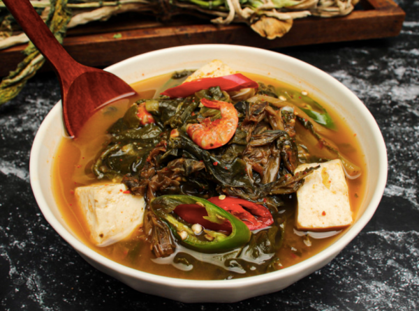 계절의 영향으로 얼었다 녹았다를 반복하며 시래기 속살과 껍질이 분리되어 연하고 부드러운 식감을 자랑합니다. 시래기에는 식이섬유가 풍부하게 함유되어 있어 위와 장에 머물며 포만감을 주고 비만을 예방합니다. 또한 철분이 많아서 빈혈에 좋고 혈중 콜레스테롤 수치를 낮추어 동맥경화증 예방에도 도움이 된다고 해요.